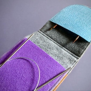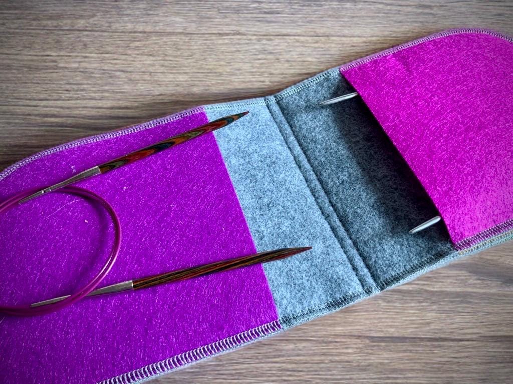 Compact and sturdy - Protect your valuable circular knitting needles with my felted needle bag! This durable knitting needle bag for circular knitting needles and accessories is the perfect product for knitters who love organization; everything is safely stored. Another advantage is that the needle bag has a stylish design and is easy to take anywhere, for example, on vacation, so you won't miss a single needle size!