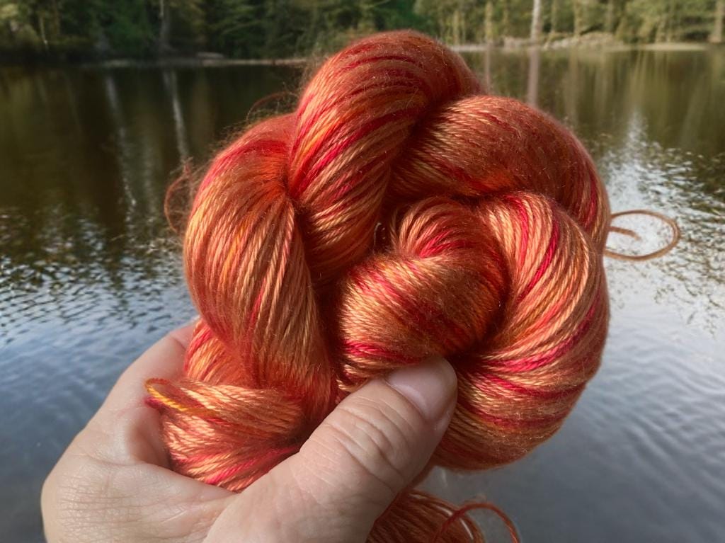 Lovingly hand-dyed, this yarn impresses with its fluid drape and smooth, cooling feel. It is ideal for delicate shawls, tops, summer accessories, and anything that should feel light against the skin.