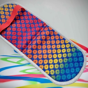 The whole thing is held together with a wide elastic band, so it can "grow with your child." Everything is now neatly stored and nothing is floating around, always within easy reach. If you want, you can also sort the needles by size or store necessary accessories in a bag.