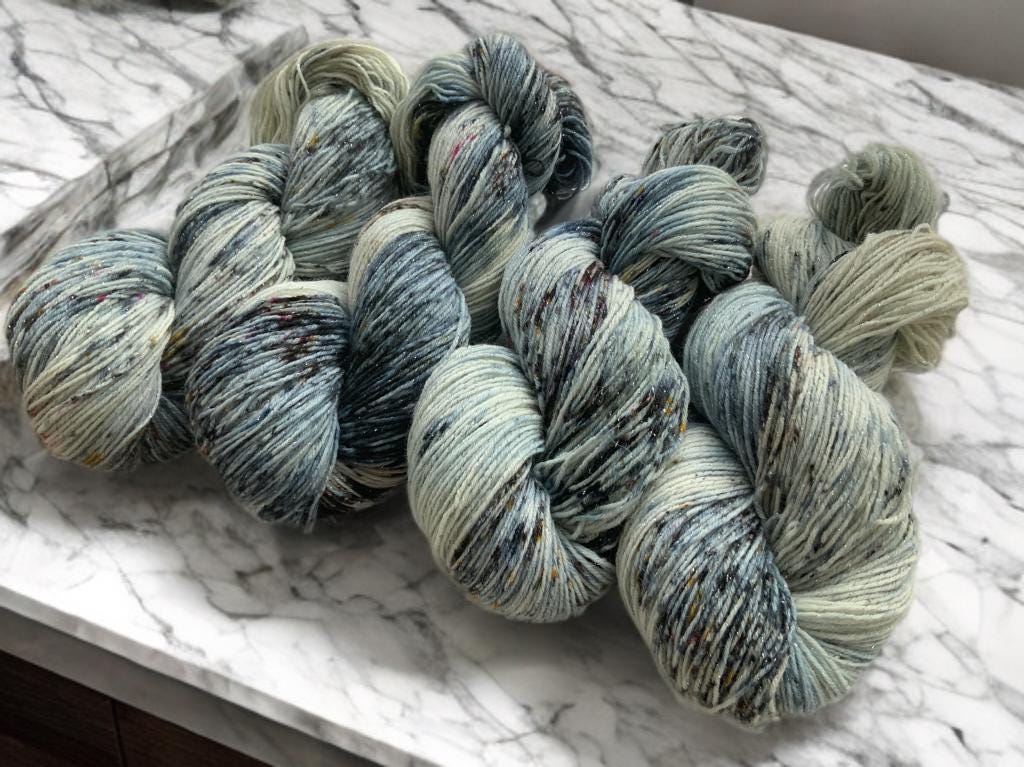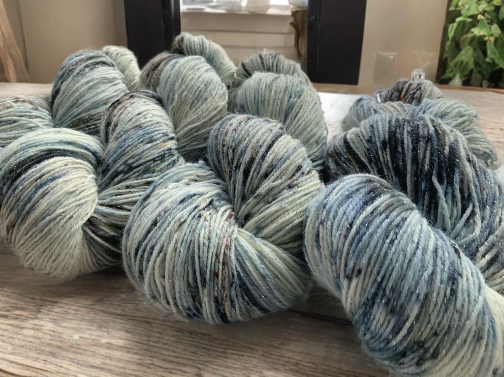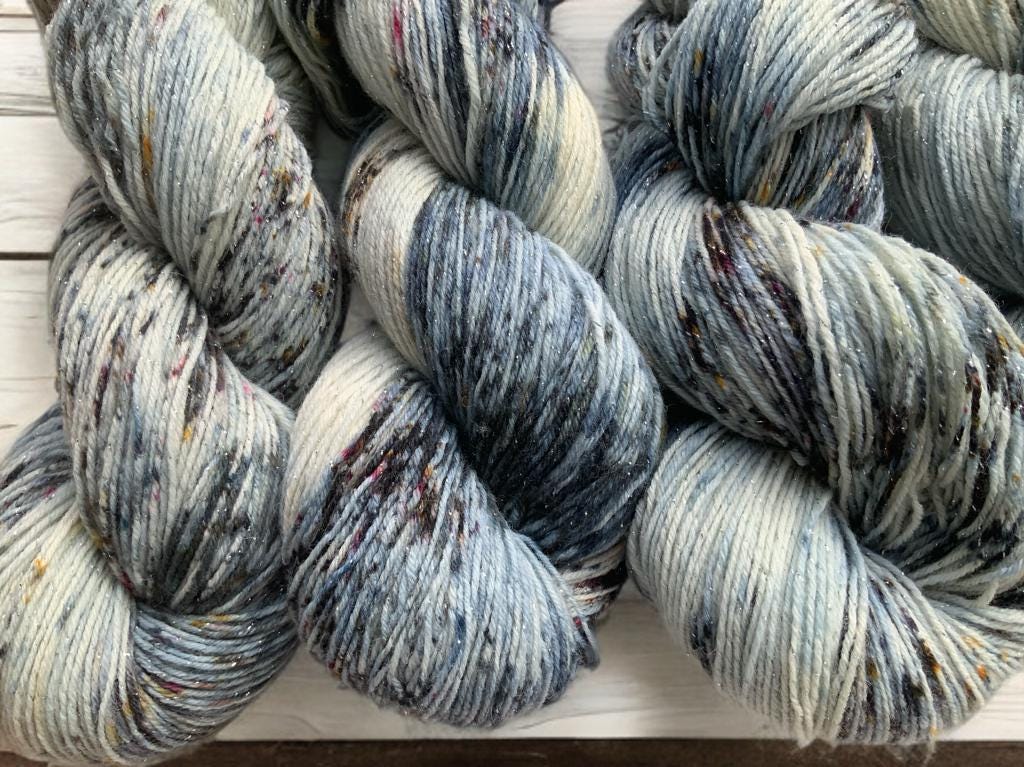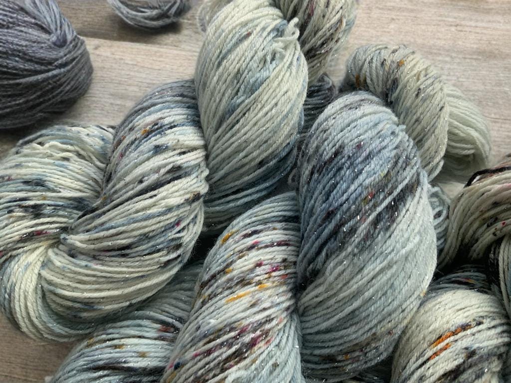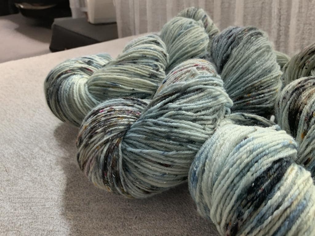 Discover this hand-dyed wool with silver lurex threads!