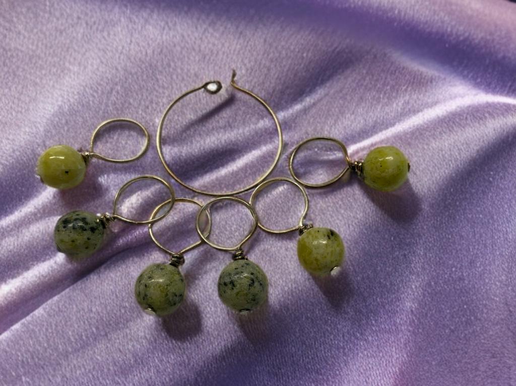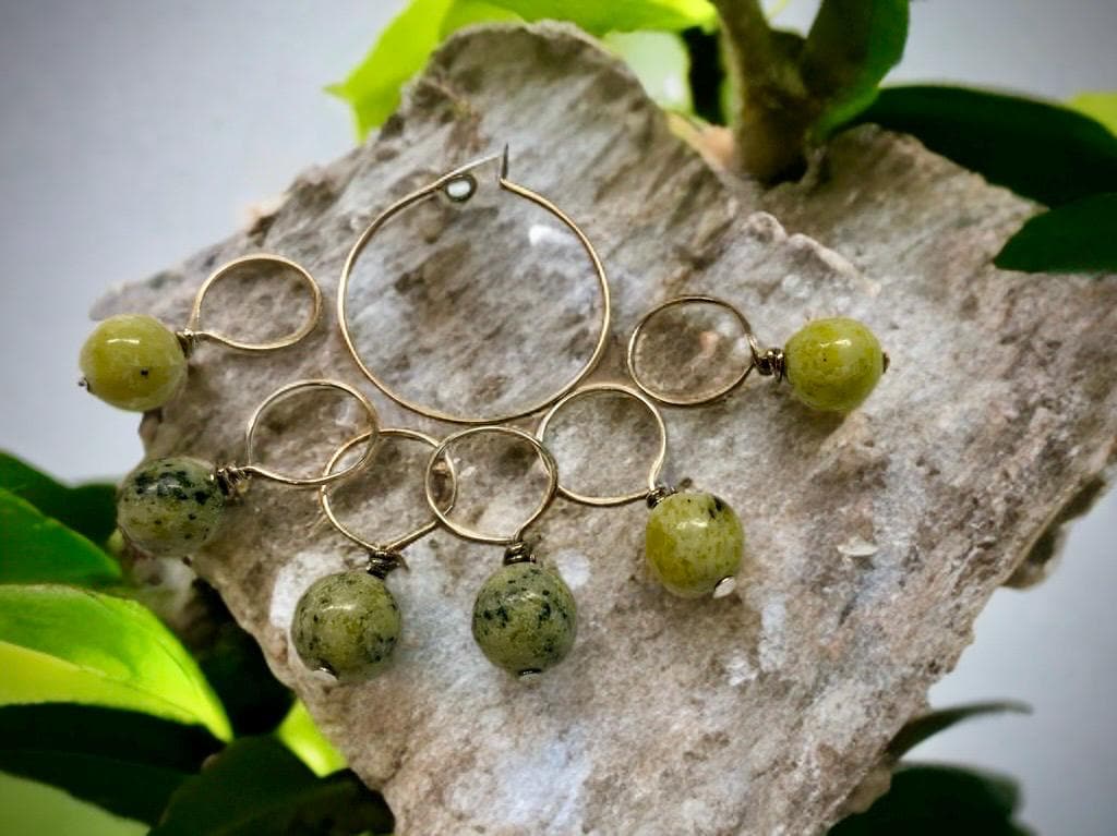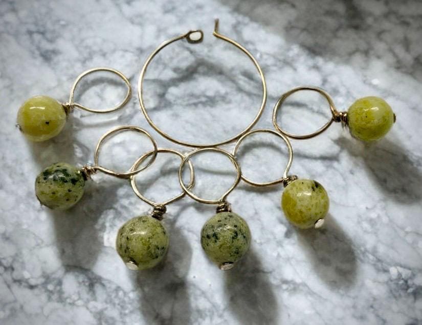 The set consists of 6 handmade stitch markers, presented in a handy ring.