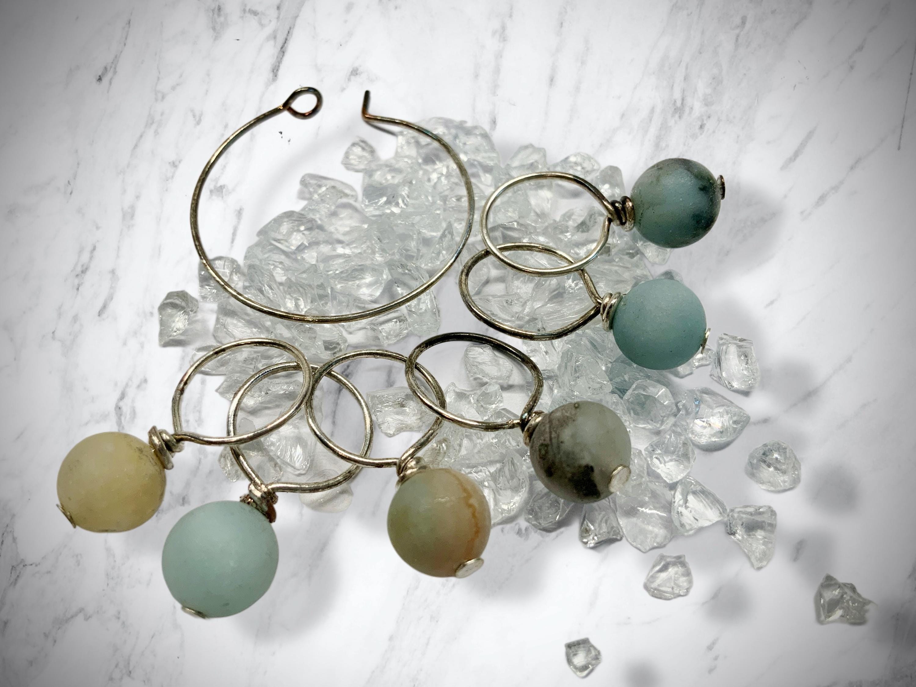 The set consists of 6 handmade stitch markers (labradorite semi-precious stones), presented in a handy ring.