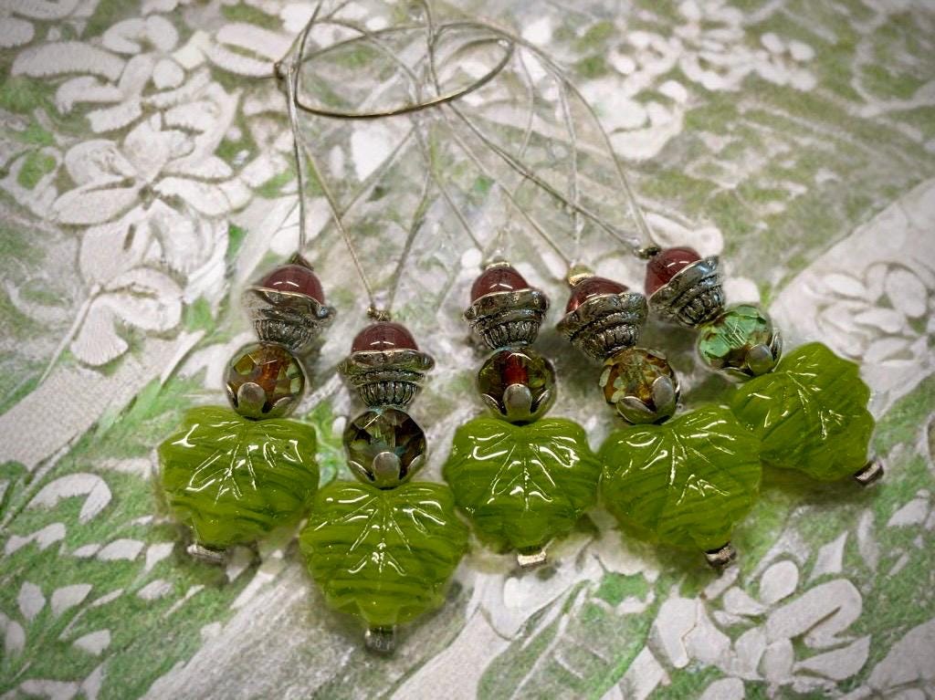 Stitch markers with Bohemian glass beads and pendants