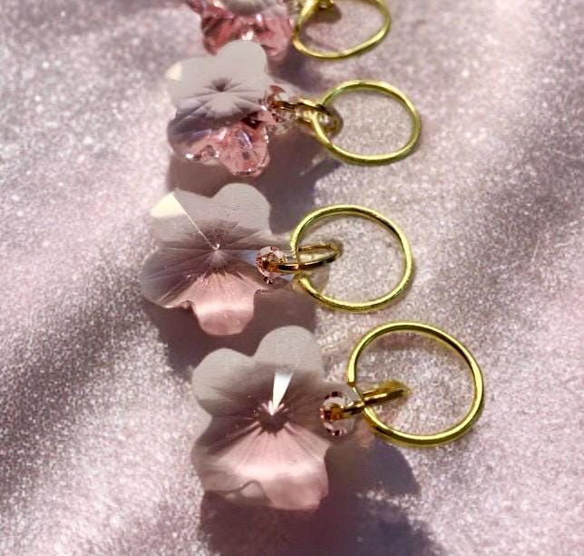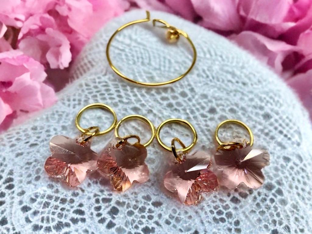 The set consists of 4 handcrafted Swarovski flower stitch markers, presented in a handy ring.