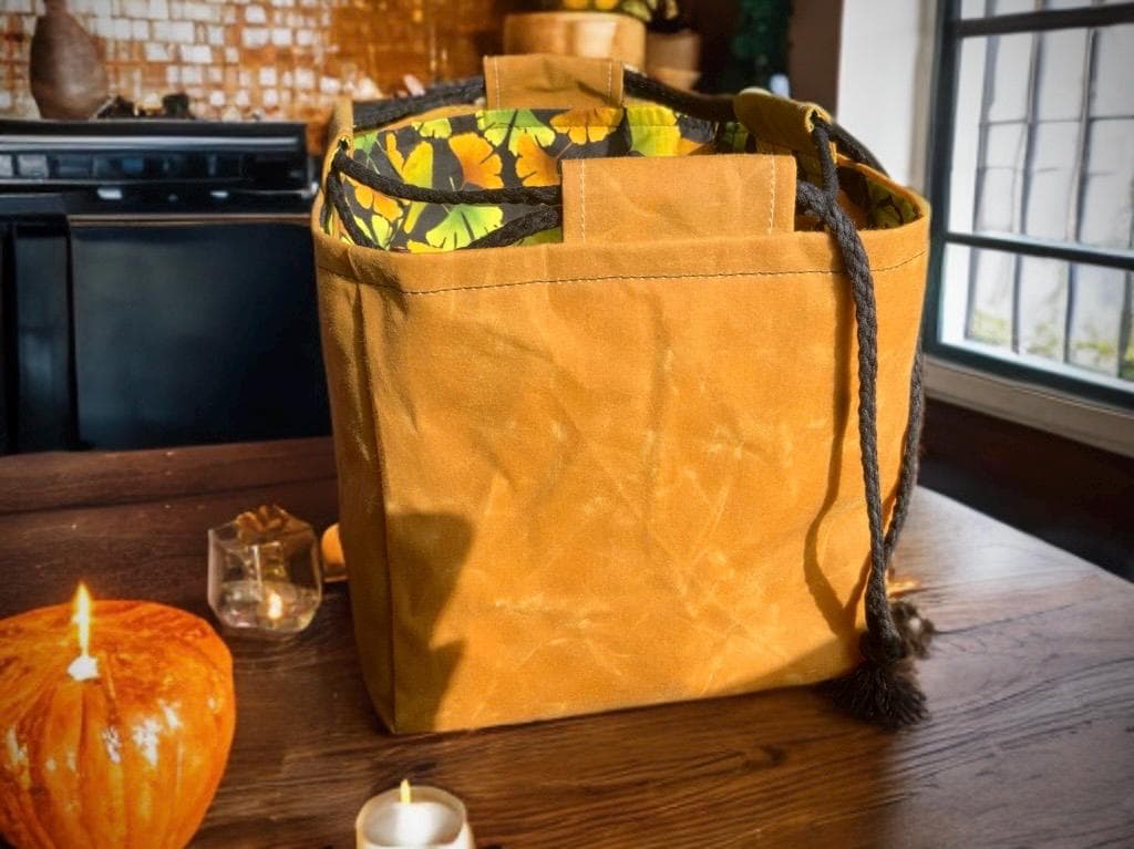 Project bag/storage for wool/craft bag made of oilskin fabric