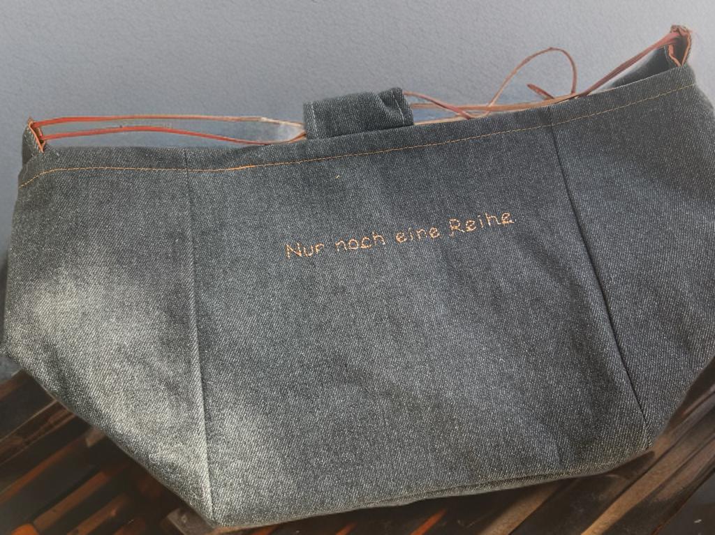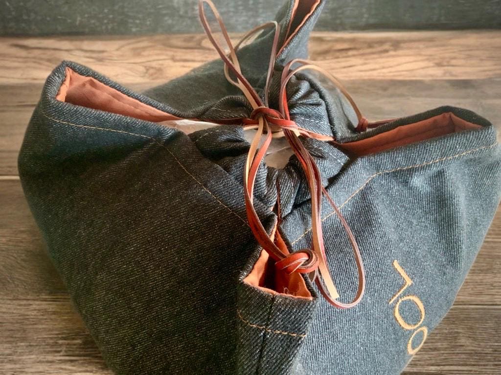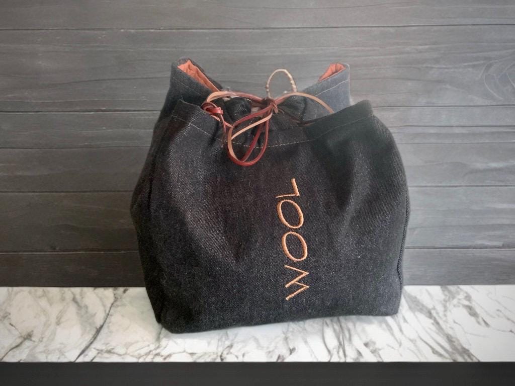 This handcrafted project bag is the ideal accessory for anyone who wants to keep their knitting and crochet projects organized, protected, and readily accessible. Made from durable black denim, it impresses with its sturdiness, longevity, and timeless, modern look.