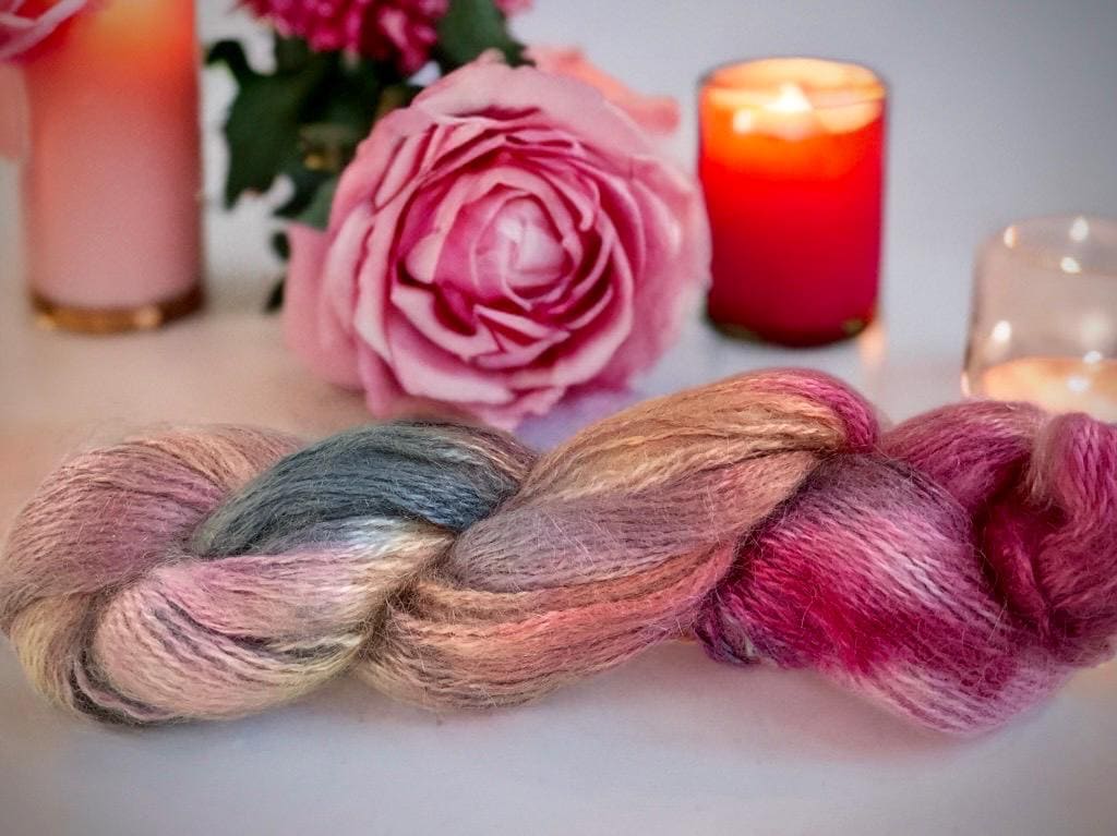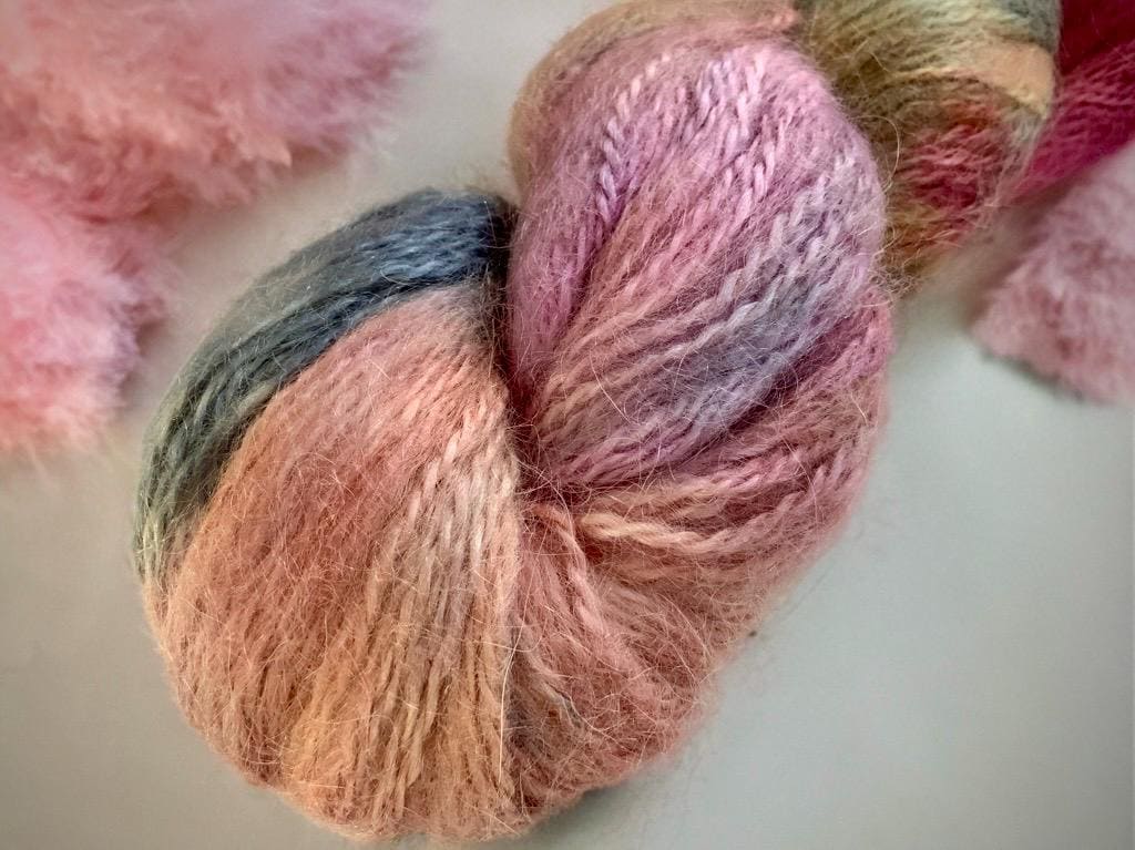 Feather-light, cuddly kid mohair wool with silk, hand-dyed in my studio in beautiful shades.